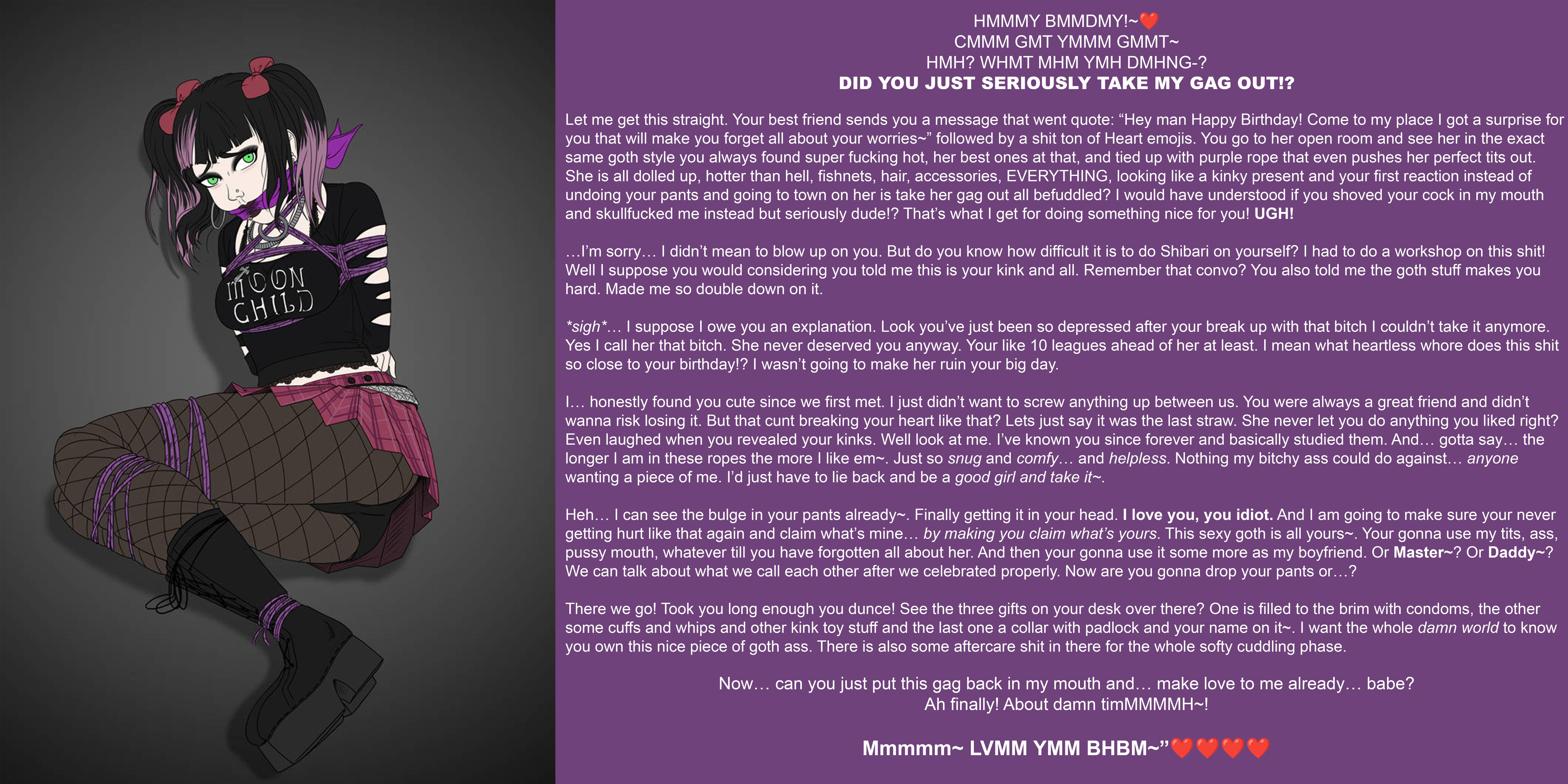 Your Goth Girl Bestie helps you move on from a Break Up [Bondage] [Wholesome] [Willing Sub] [Rescued?] [Tsundere] [Goth Best Friend] [Birthday Gift]